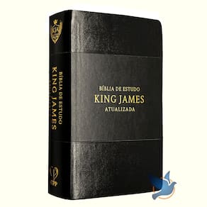 Bíblia de Estudo traduzida por King James, versão King James Atualizada KJA. Capa flexível em material sintético PU Bicolor, cor Preta. Porte grande, possui 2290 páginas. Bíblia Completa com Antigo e Novo Testamento.