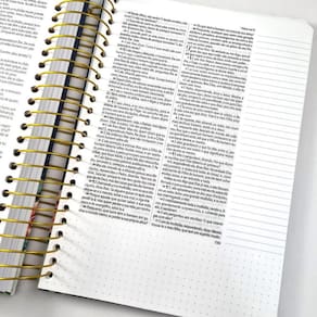 A bíblia anote com espaço para anotações, é desenvolvido seguindo o gosto de pessoas que tem um hábito e amam desenhar, escrever tudo que o que Deus tem falado com você, popularmente procurada como "journaling"