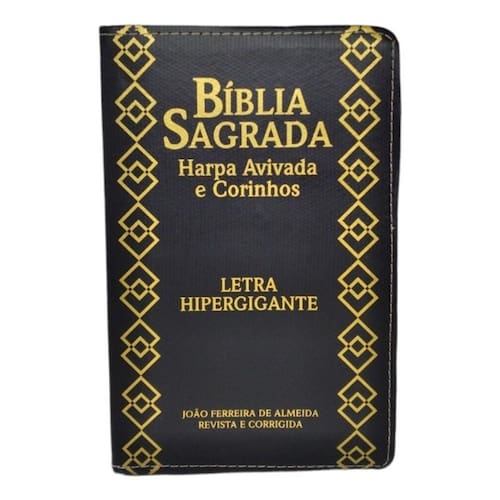 Bíblia Sagrada contendo o Antigo e o Novo Testamento, tradução de João Ferreira de Almeida - Edição Revista e Corrigida (a mais tradicional). Esta belíssima Bíblia possui as letras hipergigante para facilitar a leitura dos textos, ideal para pessoas com problemas visuais, contém Harpa Avivada hinos e corinhos.