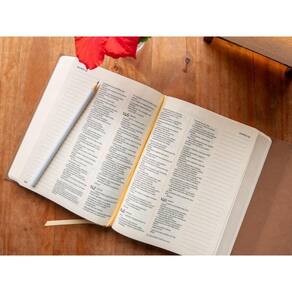 Demonstre sua devoção com criatividade! Essa Bíblia faz parte da coleção de Bíblias com espaço para anotações da Thomas Nelson Brasil, e é destinada a todos os apaixonados por lettering, colagens, anotações, aquarelas e outras formas de arte. A capa é em courosoft (PU) com toque aveludado que agrega leveza ao manuseio e fechamento em tira. Ela possui papel creme (amarelado) de alta gramatura e opacidade, o que significa que você pode desenhar, escrever e pintar a vontade! No interior, possui letra no tamanho tradicional e linguagem NVI (Nova Versão Internacional) que é baseada nos seguintes fundamentos: precisão, beleza de estilo, clareza e dignidade, trazendo uma versão ao mesmo tempo fiel e contemporânea. Nela, você encontrará ainda a fonte Leitura Perfeita. Desenvolvida exclusivamente para a Thomas Nelson Brasil, a Leitura Perfeita é uma fonte singular, moderna, bonita, clara e legível, ao mesmo tempo em que integra os melhores avanços em tipografia de bíblias modernas. O resultado é uma tipologia que traz total conforto na leitura em qualquer tamanho. Características: Texto na tradução NVI (Nova Versão Internacional) Capa em courosoft (PU) com fechamento em tira Papel amarelado de alta gramatura e opacidade Pintura Trilateral Fonte Leitura Perfeita Letra tamanho tradicional Lombada costurada para total abertura Cantos arredondados