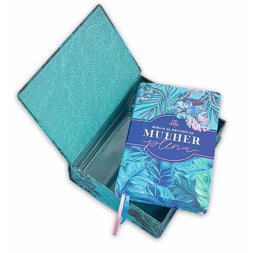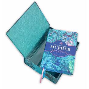 Esta edição contém: uma caixa exclusiva para guardar objetos, 4 marca páginas e 1 Bíblia de estudo da Mulher Plena.