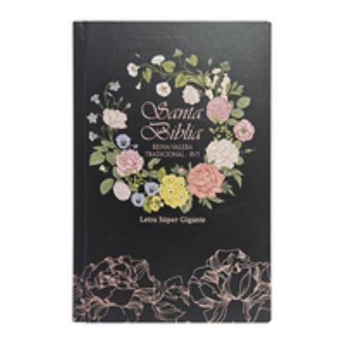 Biblia reina-valera tradicional - RVT - letra súper gigante - flores negra