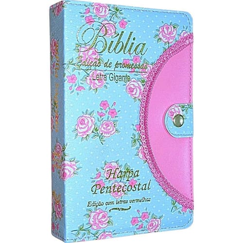 Bíblia Sagrada Com Harpa Letra Grande Botão Caneta Feminina