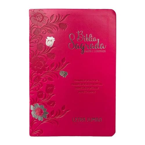 Bíblia Sagrada Gigante Letra Jumbo ARC Almeida Revista Corrigida com Harpa Capa Floral Pink Código B1521. Medidas: 23,8 x 15,2cm. Porte Grande.