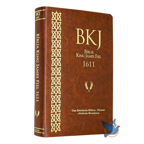 Bíblia Sagrada traduzida por King James, versão King James Fiel 1611. Capa flexível em material sintético PU, cor Marrom. Porte Grande, possui 1.248 páginas. Letra Padrão. Com fita marcadora de páginas. Não é versão de Estudo. Bíblia Completa com Antigo e Novo Testamento.