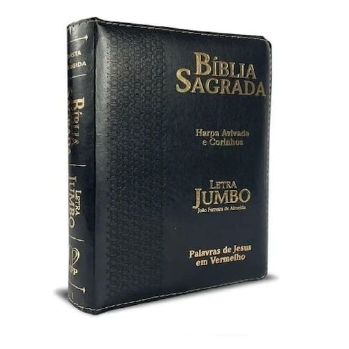 Bíblia Sagrada Letra Jumbo + Harpa - Preta - Com Zíper Descrição do produto: Bíblia nova e lacrada - com zíper Bíblia sagrada letra jumbo com harpa em capa luxo com borda colorida. Cor preta Ficha técnica: - título: bíblia sagrada com harpa avivada e corinhos - tamanho da letra: jumbo maior do mercado - tradução: joão ferreira de almeida revista e corrigida - com referências Autor: joão ferreira de almeida Editora: casa publicado paulista Tamanho: 24 x 18,5 x 5,5 cm Capa : material sintético Ano de publicação: 01/01/2019 Isbn: 978-85-7931-077-8 Idioma: igual o titulo Tipo de capa: comum Condição do item: novo Tipo de narração: manual Marca: Não Informado