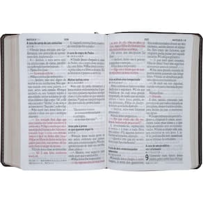 B1582 Medidas 20,50 x 14,00 x 4cm. Despacho Imediato em até 24 Horas. Bíblia Sagrada, traduzida por João Ferreira de Almeida, versão NAA Nova Almeida Atualizada. Capa Flexível em Material Sintético, na cor Preta. Com Duas Fitas Marcadoras de Páginas. Possui 2.138 páginas, porte médio. Bíblia Completa com o Antigo e Novo Testamento. CARACTERÍSTICAS: Tradução: João Ferreira de Almeida Versão: NAA Nova Almeida Atualizada Idioma: português Beiras: Douradas Letra: Supergigante Capa Flexível em Material Sintético, cor Preta Medidas: 20,50 x 14,00cm Porte Médio 2.138 páginas Completa: Antigo e Novo Testamento Sem Índice Sem Harpa RECURSOS: Letra Supergigante, Fácil de Ler Com Duas Fitas Marcadoras de Páginas Referências Bíblicas Palavras de Jesus em Vermelho Como Navegar na Bíblia Conteúdo da Bíblia Como Encontrar Ajuda na Bíblia Leitura Para Dias Especiais Plano de Evangelização Pessoal O que a Bíblia diz sobre o perdão de Deus Mapas SOBRE A BÍBLIA: Essa edição da Bíblia Sagrada é ideal para quem deseja ler a Palavra de Deus diariamente e procura um texto clássico, mas com linguagem atual. A Nova Almeida Atualizada (NAA) é uma tradução lançada em 2017 pela SBB, resultado de uma profunda revisão da consagrada tradução Almeida Revista e Atualizada. Ela apresenta um texto clássico com uma linguagem atual, seguindo a norma padrão do português escrito e falado no Brasil. O diferencial dessa Bíblia Sagrada é que ela possui letra Supergigante, um tamanho de fonte ampliado que torna a leitura mais fácil e confortável. Acompanha duas fitas marcadoras de páginas, que ajuda a identificar onde o leitor parou de ler ou para destacar informações importantes. As fitas marcadoras são ferramentas úteis para quem precise de uma maneira fácil de encontrar informações. Possui diversos recursos como: referências bíblicas; mapas; leitura para dias especiais; entre outros. Essa Bíblia é completa, com divisão de o Antigo e Novo Testamento, sendo o Antigo Testamento, o que conta a história do povo hebreu desde a criação do mundo até a conquista da terra prometida, e Novo Testamento, o que relata a vida e o ensinamento de Jesus Cristo, além do desenvolvimento da igreja cristã primitiva. Com Palavras de Jesus em Vermelho.
