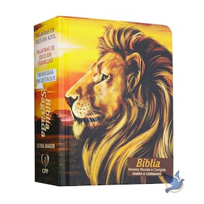 A Bíblia Sagrada na tradução de João Ferreira de Almeida, versão ARC Almeida Revista e Corrigida. Com Capa Dura Ilustrada, modelo Leão Paisagem, sendo Full Color. Acompanha Harpa Cristã e Corinhos. Palavras de Jesus em Vermelho e Palavras de Deus em Azul. Porte Pequeno Compacta, ideal para carregar na bolsa . Bíblia Completa: Antigo e Novo Testamento.