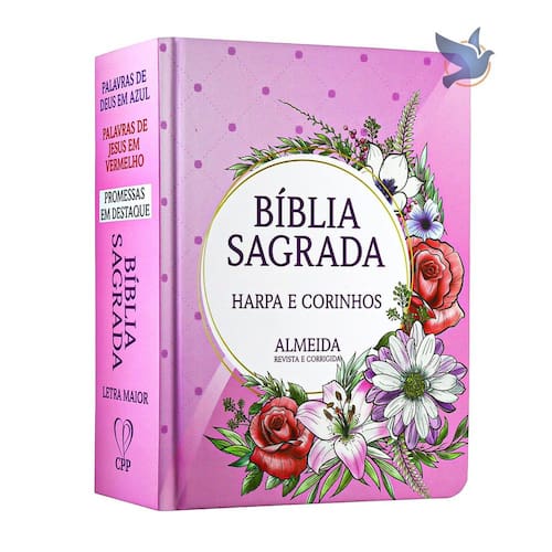 A Bíblia Sagrada na tradução de João Ferreira de Almeida, versão ARC Almeida Revista e Corrigida. Com Capa Dura Ilustrada, modelo Poá, sendo Full Color. Acompanha Harpa Cristã e Corinhos. Palavras de Jesus em Vermelho e Palavras de Deus em Azul. Porte Pequeno Compacta, ideal para carregar na bolsa . Bíblia Completa: Antigo e Novo Testamento.