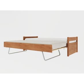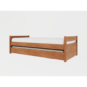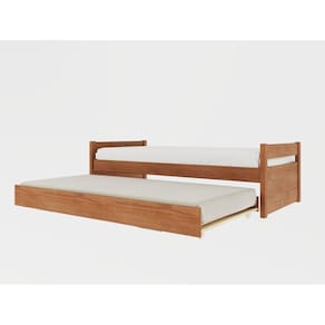 A Bicama Double solteiro produzida em pinus é um produto de qualidade e resistência, ideal para quem busca durabilidade e conforto. Além de ser uma solução inteligente para quem tem um quarto pequeno ou precisa otimizar o espaço para acomodar visitantes ou hóspedes. Além disso, essa cama possui uma cama auxiliar que pode ser puxada ao lado e elevada até na altura da cama principal, permitindo o uso de dois colchões ao mesmo tempo. A cama auxiliar possui pés retráteis de ferro, garantindo maior estabilidade e segurança durante o uso. Com um design moderno e elegante, essa cama é perfeita para quartos infantis, juvenis ou de solteiros adultos. A montagem é simples e rápida, permitindo que você desfrute de todo o conforto que esse produto oferece em pouco tempo. Acompanha Cama Auxiliar: Sim Acompanha Colchão: Não Altura do Estrado até o Chão: 32,65 cm Ambiente Principal: Quarto Cama Auxiliar Acompanha Colchão: Não Cama Auxiliar com Rodízio: Sim Cama Auxiliar Suporta Até (kg): 100 kg Complexidade da Montagem: Baixa: pode ser montado por uma pessoa sozinha Cor: Amendoa Cor do Produto: Amêndoa Escala de Brilho: Semi-Brilho Extensível: Não Itens Inclusos: 1 Bicama, kit ferragens e manual de montagem Linha ou Coleção: Double Manual de Montagem e Instalação: https://cdn2.madeiramadeira.com.br/atributo/inter-link-moveis/1259846-cama-double-90x190-montagem.pdf Material do Estrado: Madeira de Pinus Material Principal: Madeira Maciça Necessita Montagem: Sim Origem do Produto: Nacional Permite a Utilização de Cama Auxiliar: Sim Peso: 45,78 kg Possui Baú: Não Possui Gavetas: Não Possui Pés: Não Possui Portas: Não Possui Prateleiras: Não Possui Rodízio: Sim Recomendações de Uso, Manutenção e Limpeza: Não colocar o produto em lugar úmido, não arrastar, limpar somente com pano macio e seco, não expor o produto a incidência de luz solar, não colocar peso superior ao indicado. Rodízio com Trava: Não Sistema de Montagem: Parafusos, pregos, cavilhas, entre outros. Tamanho do Colchão Indicado (L x C): 0,88x1,88 Tamanho do Colchão Indicado Cama Auxiliar: 88cmx188cm Tipo de Cama: Bicama Tipo de Colchão: Solteiro Tipo de Estrado: Fixo Tipo de Madeira Maciça: Pinus