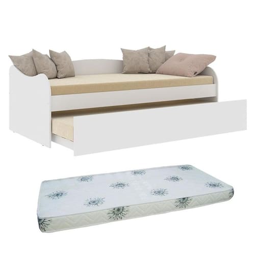 Bicama Babá Ariel Branco Acetinado com 2 Colchões Ortobom – Carolina
