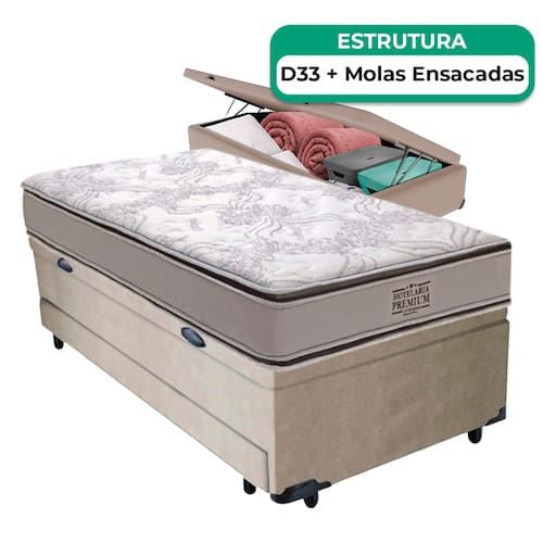 Bicama Baú + Colchão Four Season Molas V-Store 78x188x74 - Bege