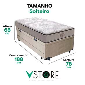 A tecnologia que a sua casa merece está na V-Store! A tecnologia e funcionalidade que sua casa merece estão aqui! O Conjunto Colchão Dallas e Bicama com Cama Auxiliar e Baú oferece conforto, praticidade e estilo. O colchão, com molas ensacadas, espuma D33, Euro Pillow e tecnologia EPS, proporciona excelente suporte, durabilidade e conforto térmico. A bicama, com cama auxiliar e baú espaçoso, otimiza o espaço do seu quarto, oferecendo suporte confortável para visitas e armazenamento extra para organizar o ambiente. Revestida com tecido sintético resistente, garante durabilidade e facilidade de manutenção. Característica Do Colchão: Modelo: Four SeasonMarca: V-StoreTamanho: SolteiroDimensões: 78x30x188 (Largura x Altura x Comprimento)Conforto: MédioSistema: Molas EnsacadasPillow: Pillow TopPeso Máximo recomendado: 150 kg (Por pessoa)Proteções: Antiácaro, antialérgico, antifungo, antimofoGarantia: 12 Meses (Espuma) / 10 anos ( Conjunto de Molas Ensacadas)Característica Da Base: Marca: V-StoreModelo: Bicama com BaúTamanho: SolteiroDimensões: 78x44x188 (Largura x Altura x Comprimento)Estrutura: MadeiraPeso máximo recomendado: 150 kg (Por Pessoa)Altura do Box: 38 cmAltura dos Pés: 6 cmAltura total: 44 cmMedida Cama Auxiliar: 78x44x188 (LxAxC) cmGarantia: 12 Meses (Estrutura e Estofamento) / 3 Meses (Tecido)Selo Ecologicamente CorretoAtenção:- Antes de finalizar sua compra, recomendamos que verifique se as dimensões do produto são adequadas para serem transportadas pelos elevadores, portas, escadas e corredores de sua residência. Ressaltamos que não nos responsabilizamos pelo transporte do produto por meios específicos, como escadas, guinchos ou içamentos.- É possível que hajam leves variações de cor de acordo com o dispositivo que está sendo utilizado como smartphones, computadores, monitores e outros.