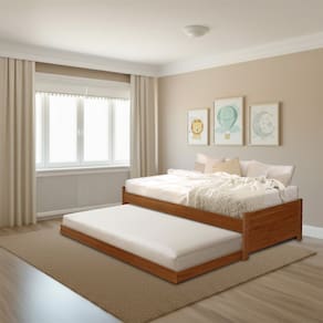 Tipo: Cama Bicama (Solteiro) Modelo: Bicama Bibox Gabrieli Cor: Castanho Possui rodízio reforçado Produto não acompanha colchão e demais itens Produto fabricado em Madeira Maciça Cama principal e auxiliar (compatível com colchões de 188x88cm)
