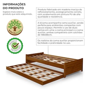 Bicama Bibox Solteiro Madeira Maciça Gabrieli com 2 Colchões - Castanho - Marrom