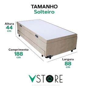 A tecnologia e funcionalidade que sua casa merece estão aqui!Bicama com Cama Auxiliar e Baú: a solução ideal para otimizar o espaço do seu quarto com estilo e conforto. A cama principal é perfeita para seu descanso diário, enquanto a cama auxiliar, com 5 cm de espuma D28, oferece o suporte ideal para acomodar visitas com conforto. Além disso, o produto conta com um baú espaçoso, perfeito para guardar travesseiros, roupas de cama ou objetos diversos, mantendo tudo organizado.Revestida com tecido sintético de alta qualidade, a bicama é resistente, fácil de manter e durável, agregando praticidade ao seu ambiente.Adquira já a sua Bicama com Baú e aproveite mais conforto, funcionalidade e espaço extra no seu quarto!CARACTERÍSTICAS DO PRODUTOMarca: V-StoreModelo: Bicama com BaúEstrutura: MadeiraPeso máximo recomendado: 150 kg (Por Pessoa)Altura do Box: 38 cmAltura dos Pés: 6 cmAltura total: 44 cmMedida Cama Auxiliar: 88x44x188 (LxAxC) cmGarantia: 12 Meses (Estrutura e Estofamento) / 3 Meses (Tecido)Selo Ecologicamente CorretoAtenção:- Antes de finalizar sua compra, recomendamos que verifique se as dimensões do produto são adequadas para serem transportadas pelos elevadores, portas, escadas e corredores de sua residência. Ressaltamos que não nos responsabilizamos pelo transporte do produto por meios específicos, como escadas, guinchos ou içamentos.- É possível que hajam leves variações de cor de acordo com o dispositivo que está sendo utilizado como smartphones, computadores, monitores e outros.
