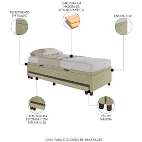 SizeDescription: 34 x 88 x 188 cm | Origem: | Requere montagem: Sim | ProductWeight: 35 | ProductLength: 188 | Manual: Sim | ProductWidth: 88 | ProductHeight: 34 | ProductInstructions: Produto para uso em ambiente interno, nao devendo ficar exposto ao sol, calor e umidade excessivos. | Cor: Bege | Profundidade: 188 cm | Peso: 35 kg | Gênero: Unissex | Largura: 88 cm | Material: Madeira Reflorestada | OriginState: PR | MaterialFamily: Madeira | ProductWarranty: 90 dias após o do produto | Model: Samy | ProductContents: 1 Base de cama com auxiliar | AssemblyRequired: Sim, sugerimos a contratação do nosso de montagem (para os CEPs em que o está dispon | OriginCountry: | SupplierSimpleName: Bicama Box Baú Solteiro 88x188 cm Samy S05 Veludo Bege - Mpozenato | Color: Bege | ColorFamily: Bege | ColorSimple: Bege | ColorSupplier: Bege | Altura: 34 cm