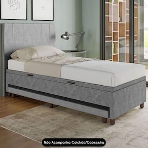 Essa é a Bicama Box Baú Solteiro 88x188 cm Samy S05 Veludo Cinza, da Mpozenato, representa uma solução inovadora para quem valoriza a combinação de conforto e praticidade em móveis.