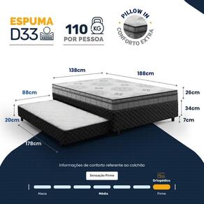 - Tipo de colchão Auxiliar: Espuma D28;