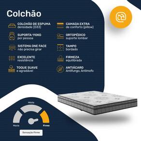 - Tipo de conforto: Firme (Ortopédico);