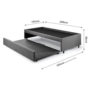 Bicama para dois colchões sendo o colchão superior Solteirão 96x203 (sem limite altura) e colchão auxiliar solteiro de 88x188 (com até 26cm de altura).