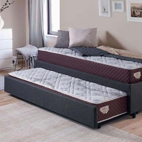 Um produto exclusivo Cama inHouse, a Bicama Bedsleep Solteiro inova trazendo aos clientes a opção de escolher além do colchão principal, também o colchão auxiliar, pois a cama auxiliar suporta um colchão de até 26 cm de altura.
