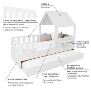 Diferenciais: Auxiliar com 4 rodízios, MDF Melamina 15mm, Estrados em Madeira Maciça, Casinha com Telhado, Grades Anatômicas (Todas as Grades são Removíveis)