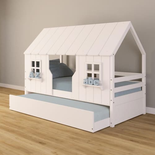 Diferenciais: Auxiliar com rodízios, Casinha e Telhado com fechamento em MDF, 02 Janelas e Prateleira Decorativa