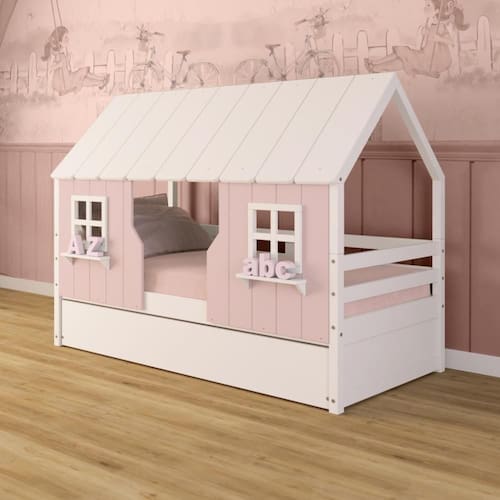 Diferenciais: Auxiliar com rodízios, Casinha e Telhado com fechamento em MDF, 02 Janelas e Prateleira Decorativa