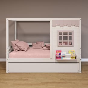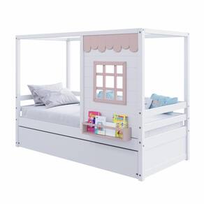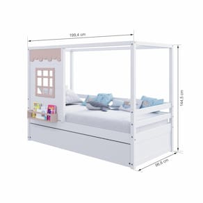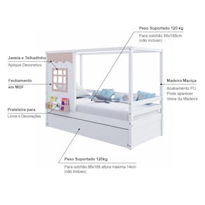 Diferenciais: Auxiliar com 4 rodízios,Casinha com fechamento em MDF, Janela e Prateleira para Livros e Decoração, Montagem Reversível (Lado Direito ou Lado Esquerdo)