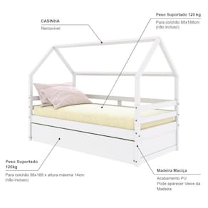 Medida do Colchão da Cama Auxiliar (cm x cm): 188x88 *14 (Altura Máxima Recomendada) (Não incluso)