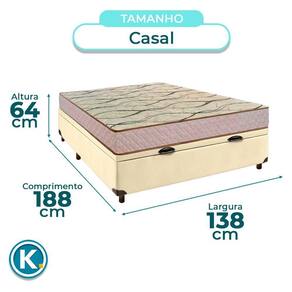 Suporta até 150kg, garantindo firmeza e durabilidade para diferentes perfis Base baú Casal com 42cm de altura e amplo espaço interno para organização