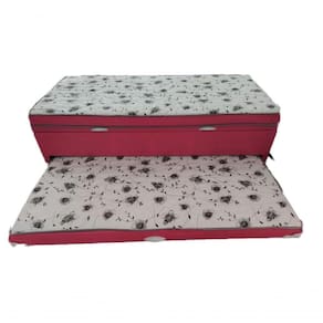 Bicama com Baú Solteiro Bibox com Cama Auxiliar Espuma 5CM Madeira Vermelho