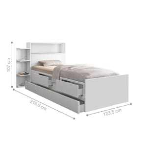 Bicama Com Baú Solteiro Secret Branco Cama Solteiro Com Baú Santos e Auxiliar Branco