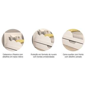 A Bicama Elza com Proteção da Permóbili Baby une segurança, charme e funcionalidade em um só móvel. Produzida em MDF com pintura UV e acabamento em laca, garante resistência e um visual delicado para o quarto infantil. O destaque fica por conta da proteção lateral com formato de nuvem usinado e bordas arredondadas, oferecendo mais segurança para os pequenos. A cabeceira e a peseira contam com detalhes em baixo relevo, enquanto a cama auxiliar possui rodízios e frente com acabamento usinado. Os pés e molduras em MDF 35mm com bordas laqueadas reforçam a estrutura. Compatível com colchões de 188x88 cm (cama auxiliar com até 16 cm de altura), é ideal para acomodar com conforto e estilo acompanhado colchões.