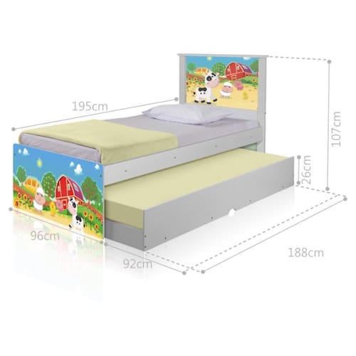A Bicama Bibox Juvenil Barcelona Adesivada Fazendinha Colorida é belíssima e conta com um design funcional, que ocupa pouco espaço no ambiente.