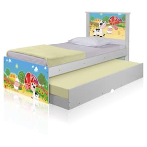 Bicama Bibox Juvenil Barcelona Adesivada Fazendinha Colorida com 2 Colchões - Branco