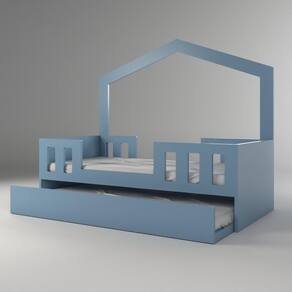 Bicama Infantil Casinha Play Azul. Traz a filosofia montessoriana, oferecendo liberdade e autonomia para a criança com um toque a mais de modernidade. A Linha Play possui elementos que proporcionam maior praticidade e deixam o ambiente clean e alegre. Possui estrutura reforçada, sendo utilizado MDF de 2,5cm e madeira maciça em sua fabricação, proporcionando maior durabilidade para o móvel. A pintura laca traz o acabamento de alto padrão. Utilizado colchão padrão solteiro (1,88x0,88mt) nas duas camas. Casinha montessoriana montada na parede, proporcionando maior espaço no quarto. Disponível sem casinha. Pode ser adquirida nas versões Cama simples e Casal. Marca: Timber Ean: 7909903282076