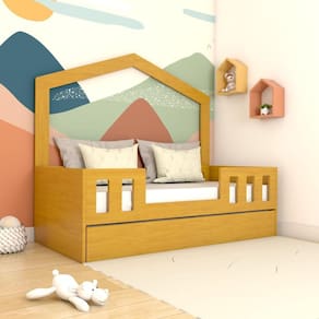 Bicama Infantil Casinha Play Marrom. Traz a filosofia montessoriana, oferecendo liberdade e autonomia para a criança com um toque a mais de modernidade. A Linha Play possui elementos que proporcionam maior praticidade e deixam o ambiente clean e alegre. Possui estrutura reforçada, sendo utilizado MDF de 2,5cm e madeira maciça em sua fabricação, proporcionando maior durabilidade para o móvel. A pintura laca traz o acabamento de alto padrão. Utilizado colchão padrão solteiro (1,88x0,88mt) nas duas camas. Casinha montessoriana montada na parede, proporcionando maior espaço no quarto. Disponível sem casinha. Pode ser adquirida nas versões Cama simples e Casal. Marca: Timber
