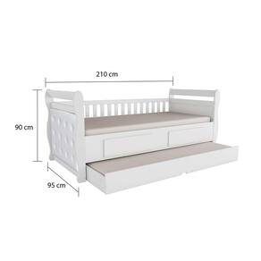 A Bicama Infantil Maria 2 Gavetas Móveis Peroba Branco é um produto 100% MDF, sua pintura é atoxica, possui as cabeceiras e grades com bordas laqueadas, cama auxiliar inclusa, estrados de madeira e kit capitonê (vendido separadamente).
