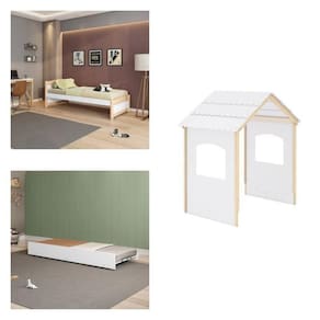 1x Telhado para Cama Infantil Casinha Branco/Natural Largura: 108,5 cm Altura: 117,3 cm Peso: 22,5 kg Profundidade: 76,2 cm Necessita Montagem: Sim