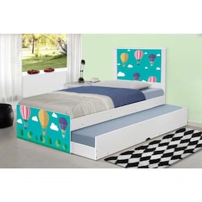 A Bicama Bibox Juvenil Barcelona Adesivada Balões no Céu é belíssima e conta com um design funcional, que ocupa pouco espaço no ambiente.