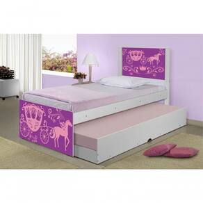 A Bicama Bibox Juvenil Barcelona Adesivada Carruagem Princesa é belíssima e conta com um design funcional, que ocupa pouco espaço no ambiente.