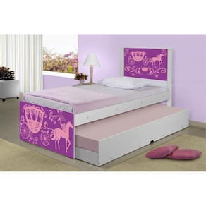 A Bicama Bibox Juvenil Barcelona Adesivada Carruagem Princesa é belíssima e conta com um design funcional, que ocupa pouco espaço no ambiente.