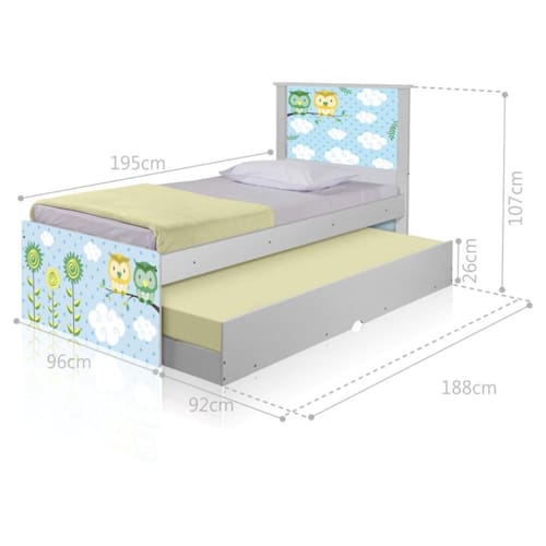 A Bicama Bibox Juvenil Barcelona Adesivada Corujinhas é belíssima e conta com um design funcional, que ocupa pouco espaço no ambiente.