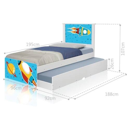 Bicama Juvenil Adesivada Foguete Espacial Com Colchões - Branco