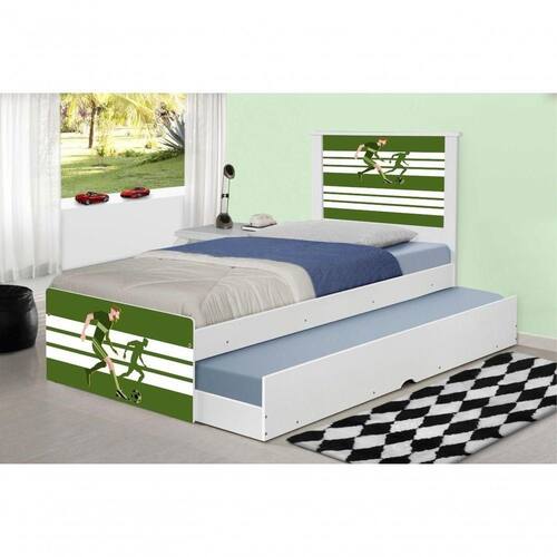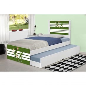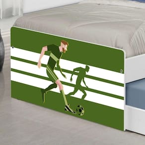 A Bicama Juvenil Barcelona Adesivada Futebol Jogador é belíssima e conta com um design funcional, que ocupa pouco espaço no ambiente. A Coleção Futebol Jogador foi desenvolvida por nossos designers oferecendo um visual exclusivo, descontraído e diido ao ambiente. A cama auxiliar fica embaixo da principal e basta puxá-la por meio das corrediças para começar a fazer uso dela. É ideal para quartos pequenos e para caso precise de uma cama extra para receber um amigo, ou divida o dormitório com alguém. Feita em MDF e MDP e seu acabamento é feito com pintura UV brilhante tornando-a um produto resistente e com aspecto de por muito mais tempo. É uma excelente escolha para acomodar colchões de solteiro na medida de 188 cm x 88 cm de largura.