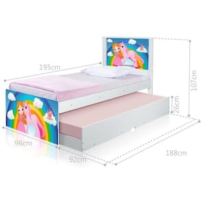 A Bicama Juvenil Adesivada Princesa e Unicórnio é belíssima e conta com um design funcional, que ocupa pouco espaço no ambiente.