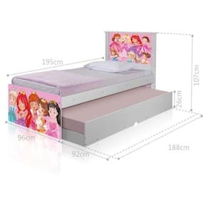 A Bicama Juvenil Barcelona Adesivada Princesinhas é belíssima e conta com um design funcional, que ocupa pouco espaço no ambiente.