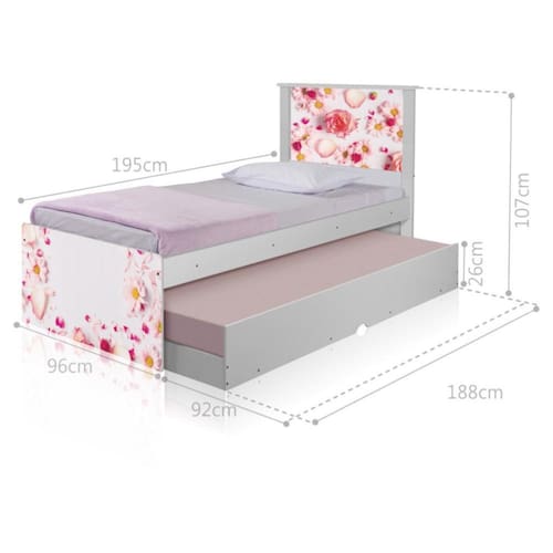 A Bicama Bibox Juvenil Barcelona Adesivada Rosas é belíssima e conta com um design funcional, que ocupa pouco espaço no ambiente.
